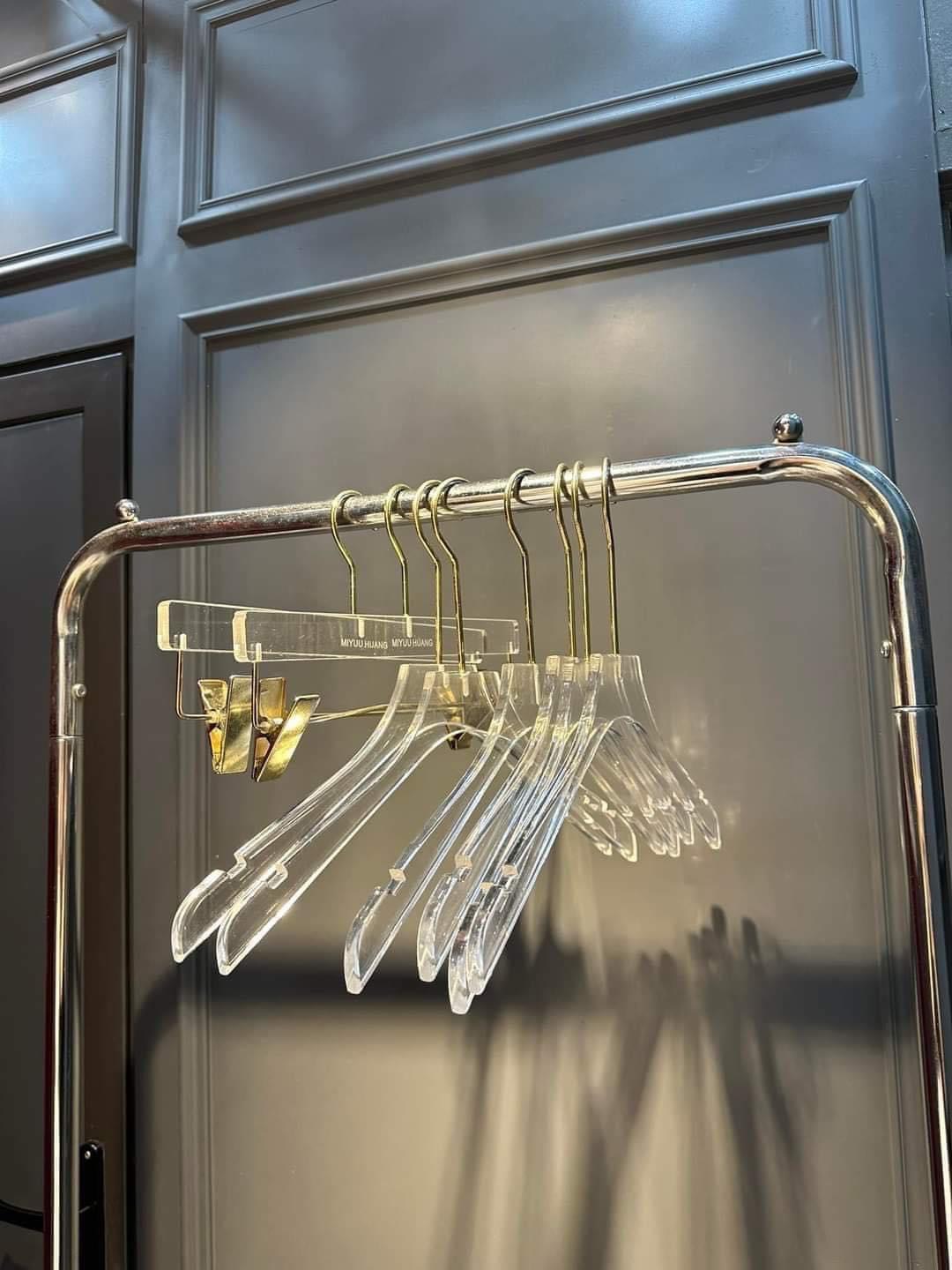 Móc Mika có màu trong suốt kết hợp với đầu móc dài mạ vàng 15cm. Móc đẹp bắt mắt, sang trọng, vô cùng phù hợp với không gian sang chảnh trong các shop thời trang cao cấp. Màu sắc trong suốt tô điểm thêm cho các bộ trang phục được treo lên. Vì vậy nên dù giá thành khá cao, móc mika vẫn được các shop thời trang cao cấp ưa chuộng.