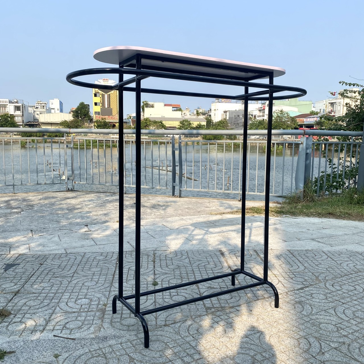 Với độ tiện dụng cao, vừa có 2 sào treo 2 bên, kèm ván gỗ thêm không gian trưng bày và mức giá quá phải chăng, đây là mẫu kệ xứng đáng được các shop cân nhắc chọn lựa.