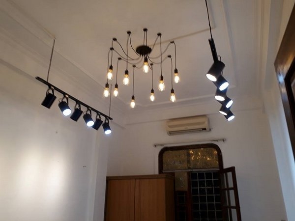 Đèn rọi được đấu điện đầy đủ và lắp theo ý muốn của chủ shop.