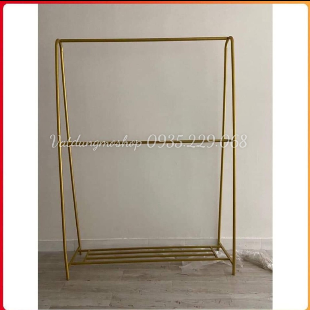 Kệ được thiết kế đơn giản nhưng không kém phần tinh tế, vừa giúp shop sắp xếp đồ áo trở nên ngăn nắp hơn vừa tiết kiệm không gian cho shop. Không những thế, với màu vàng đồng sang trọng, kệ giúp nâng tầm giá trị sản phẩm, thu hút được sự chú ý của khách hàng.