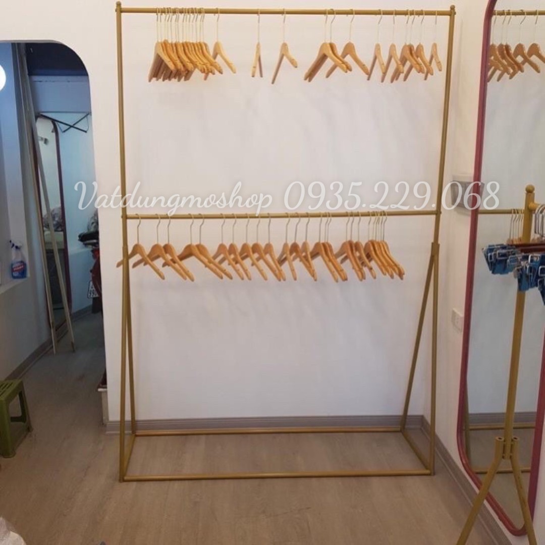 Ưu điểm: Kệ có 2 tầng để treo đồ áo, thiết kế tinh tế và sang trọng, độ cao hoàn hảo phù hợp cho cả shop trẻ em và người lớn.