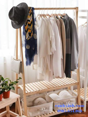 Kệ gỗ treo quần áo chữ A 2 tầng