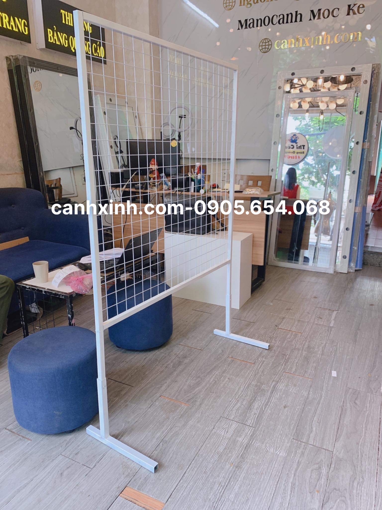 Khung lưới có chân sắt giúp các shop không cần thiết kế chỗ khoan bắt tường và linh động đặt được mọi chỗ trong shop