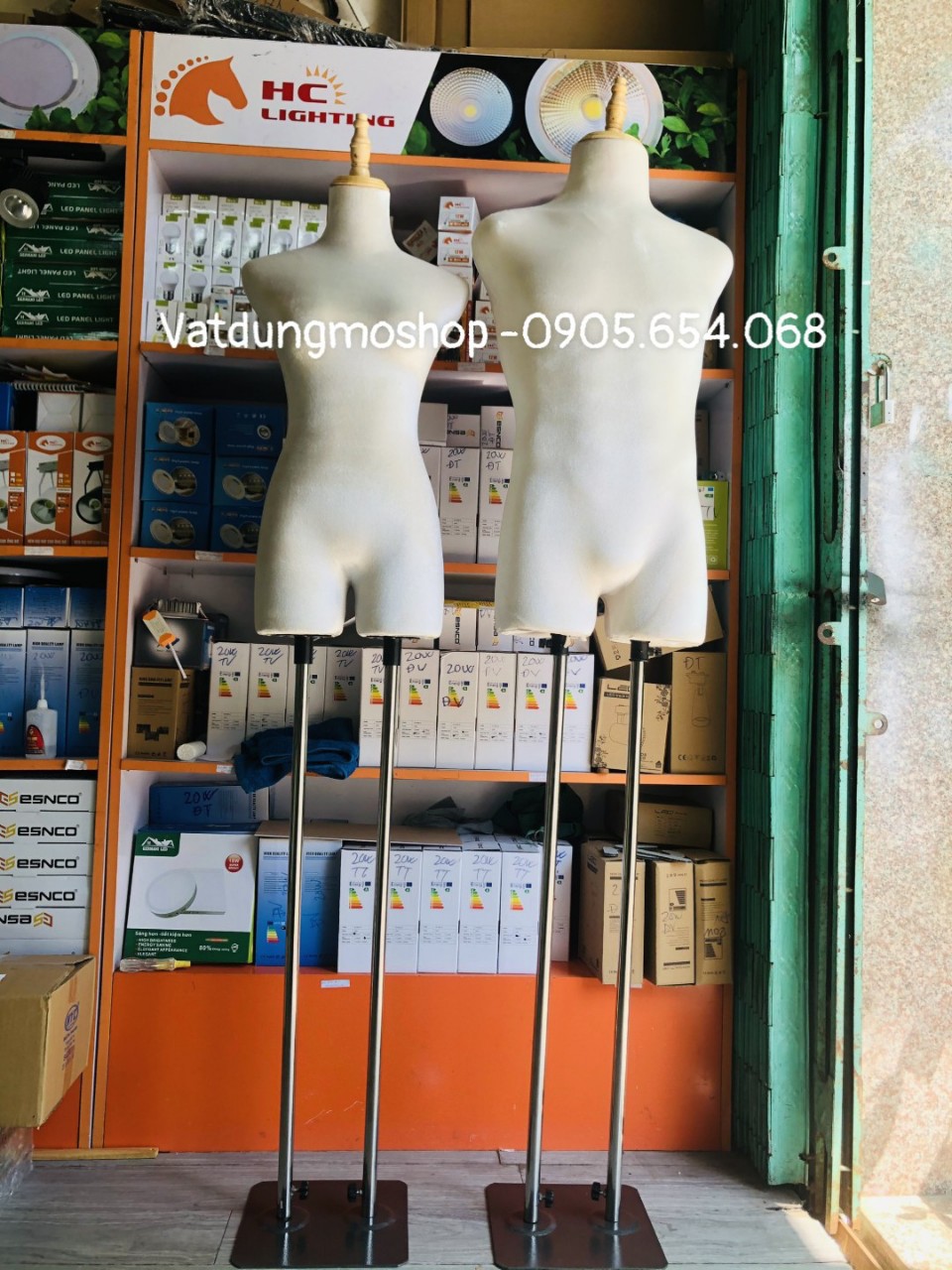 - Đối với mẫu thân nhựa bọc vải: Được thiết kế với form chuẩn, đi kèm cùng manocanh là chân gỗ, chóp gỗ vô cùng tinh tế, phần gỗ sẽ có 2 màu để