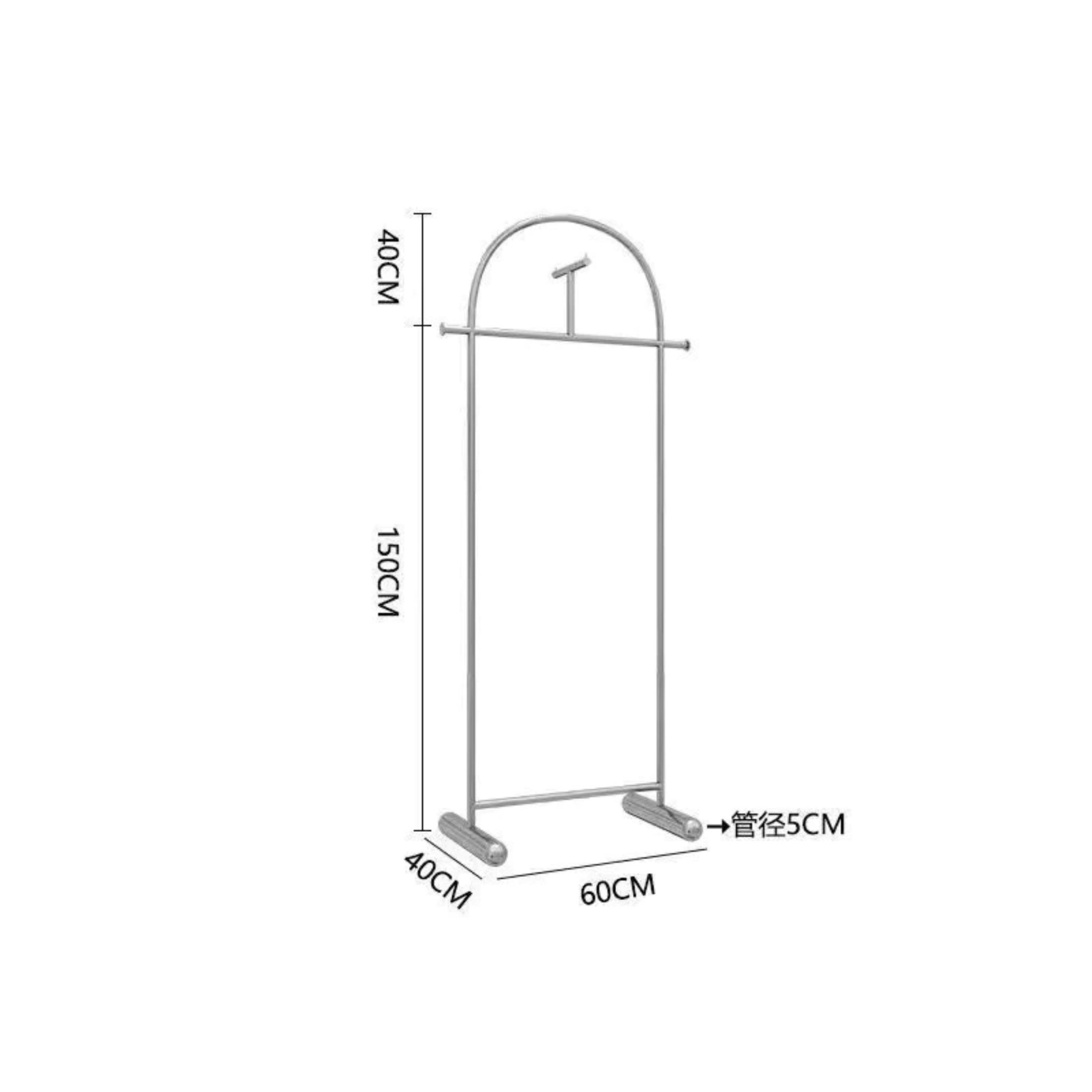 Sản phẩm này có thiết kế đơn giản với một thanh treo quần áo, thường được sử dụng để treo quần áo trong cửa hàng hoặc tủ quần áo.