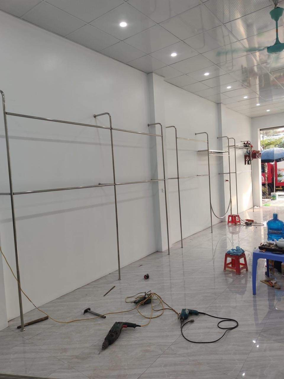 Sản phẩm này là một phiên bản nâng cao của sào quần áo inox, với hai tầng treo quần áo để tối ưu hóa không gian và trưng bày sản phẩm.