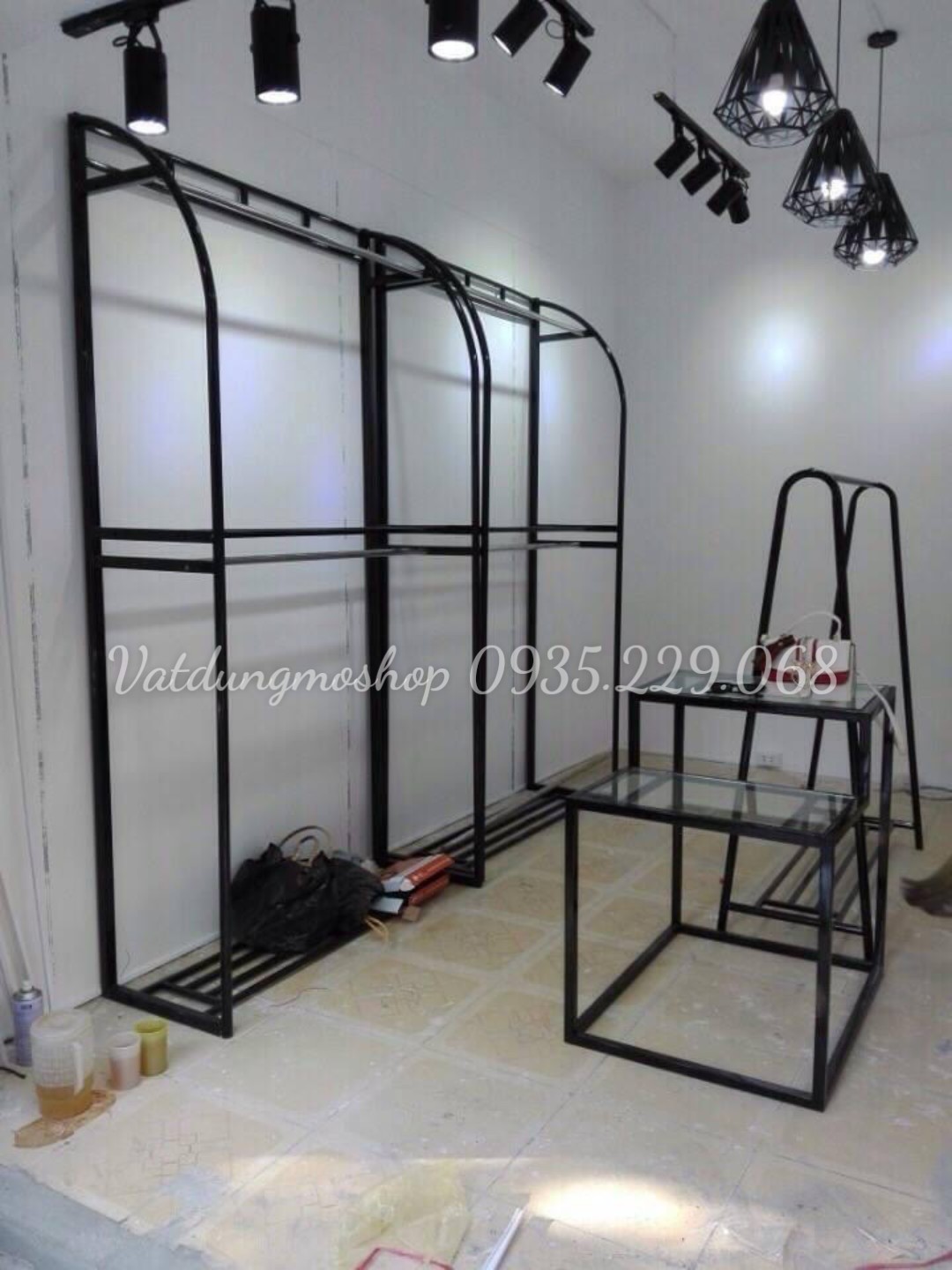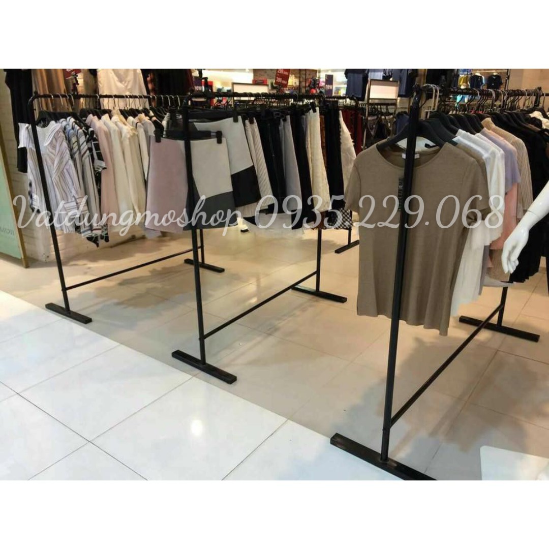 - Kệ chữ Y 1 tầng : Kệ cao 1m5 dài 1m5 được làm bằng sắt, phủ một lớp sơn vàng đồng, kệ được các shop thời trang ưa chuộng và sử dụng rộng rãi bởi vì màu sắc và thiết kế vô cùng tinh tế và sang trọng. Kệ được dùng để treo áo, váy, yếm , đồ bộ,...